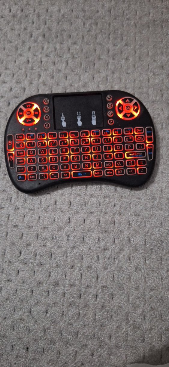 Kırmızı arkadan aydınlatmalı, tuş yüzeyli kompakt siyah mini klavye. Çeşitli cihazlarla uyumludur.
