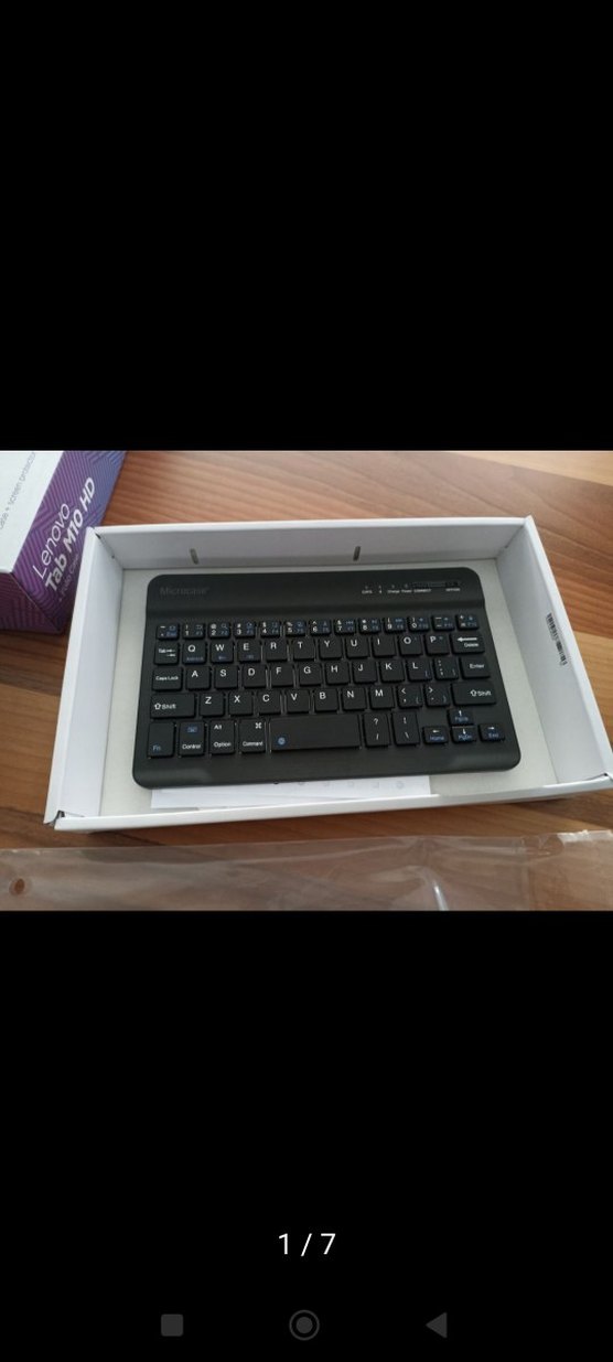 Kompakt kablosuz klavye, beyaz yazılı koyu tuşlara sahip. Taşınabilir kullanım için uygun ve küçük alanlara kolayca sığar. ️ Lenovo tablet ile uyumlu.microcase marka