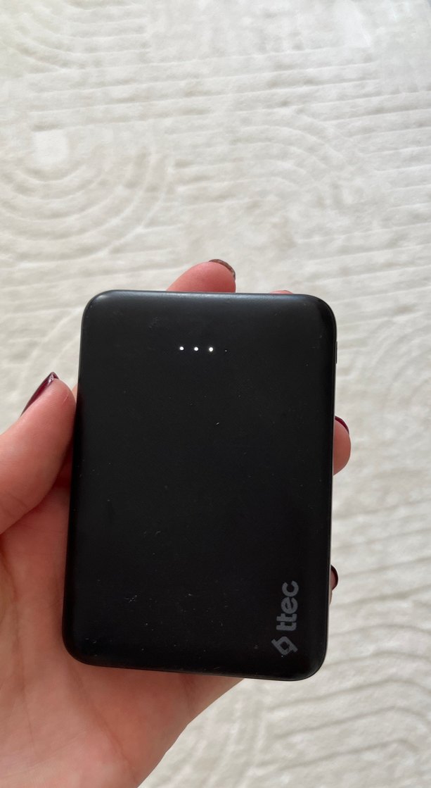 LED şarj göstergeli, taşınabilir cihazlar için kompakt siyah Ttec power bank.