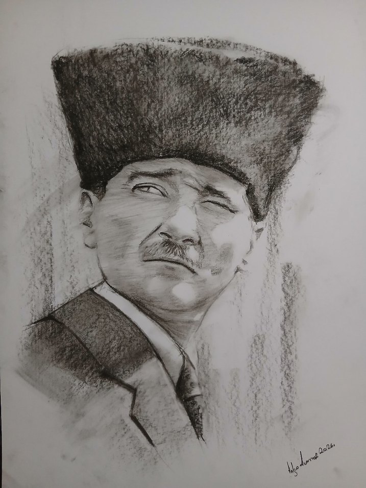 35x50cm Kömürkalem Kalpaklı Atatürk Portresi✒️