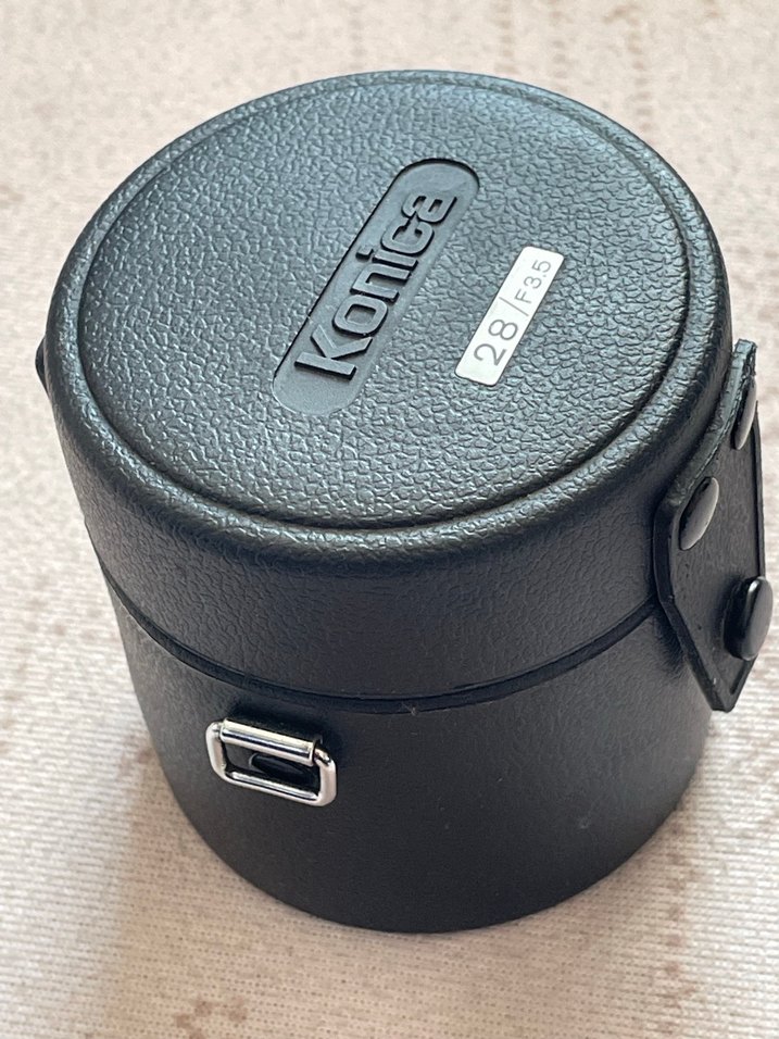 Siyah renkte, dokulu yüzeye sahip ve güvenli çıtçıt kapamalı Konica lens kılıfı, film kamera lensinizi korur.