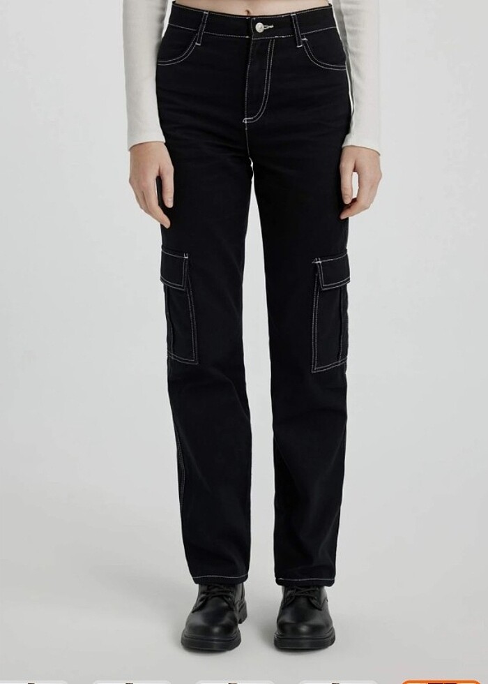 Kontrast dikişli kargo pantolon
