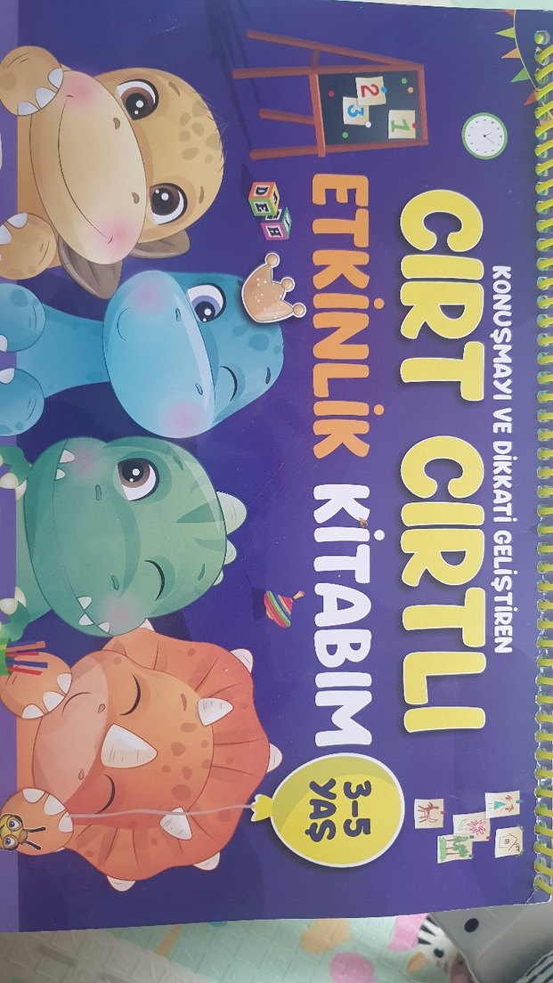 3-5 yaş çocuklar için konuşma ve dikkati geliştiren, renkli dinozor çizimleriyle etkinlik kitabı. Eksiği yoktur.