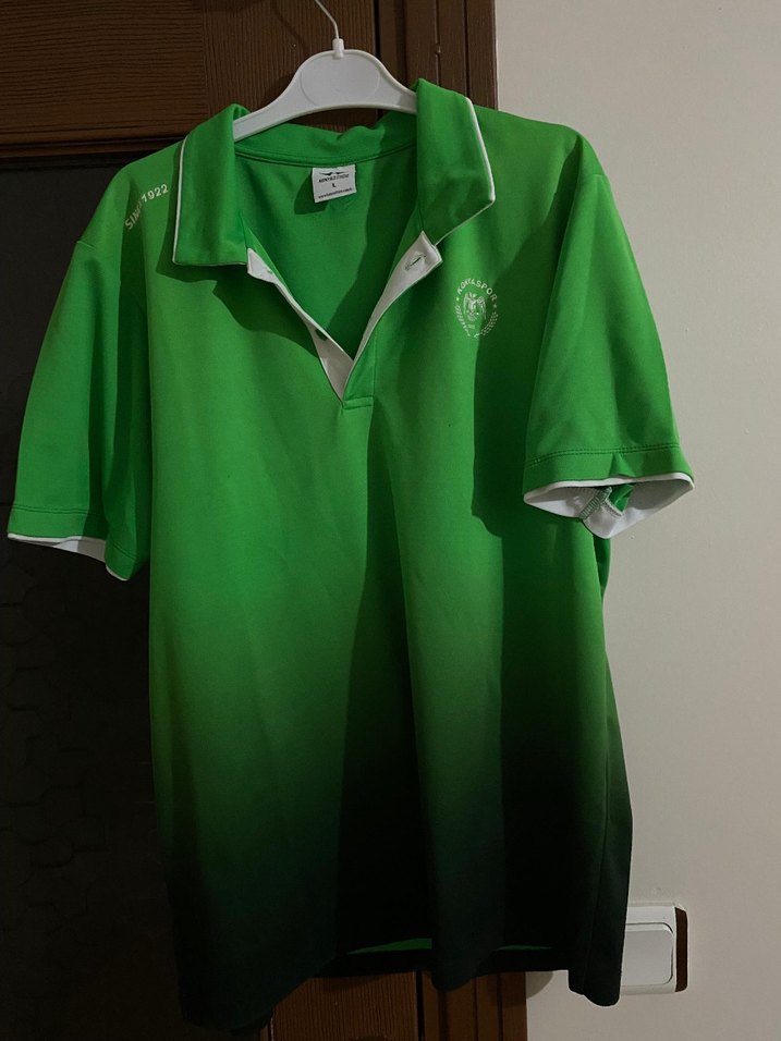 Yeşil, kısa kollu, düğmeli Konyaspor polo yaka tişört. Baskılı desenli, parlak ve ipeksi dokulu kumaştan, rahat kesim. Günlük sokak tarzı için uygun.