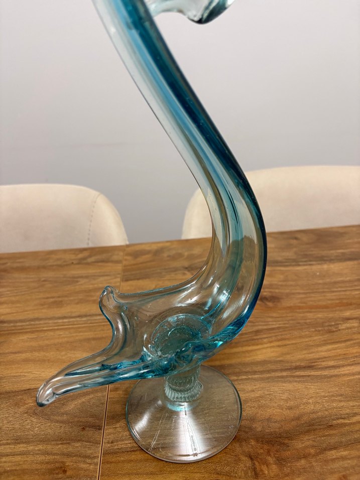 Geçişli mavi renkte, sunumluk çok şık ve zarif bir duruşa sahip.Kuğu zerafetini sonuna kadar hissettiren eski ve kullanılmamış sunumluk.Yerden yüksekliği 36.5 cm dir.Estetiktir ve benzersiz kavisli tasarıma , sağlam tabana sahip dekoratif cam lokumluk şekerlik yada sadece dekoratif amaçlı kullanılabilir