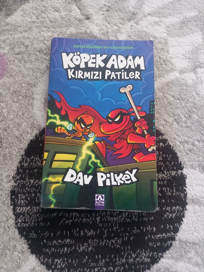 Dav Pilkey'in renkli çizimlerle dolu, macera dolu çocuk kitabı Köpek Adam Kırmızı Patiler.