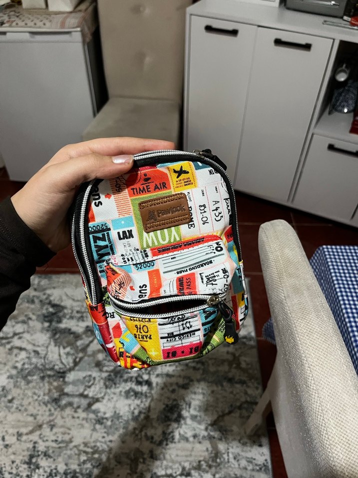 Çok renkli baskılı, fermuarlı bölmeli bebek çantası, eşyalarınızı düzenlemek için kullanışlıdır.
