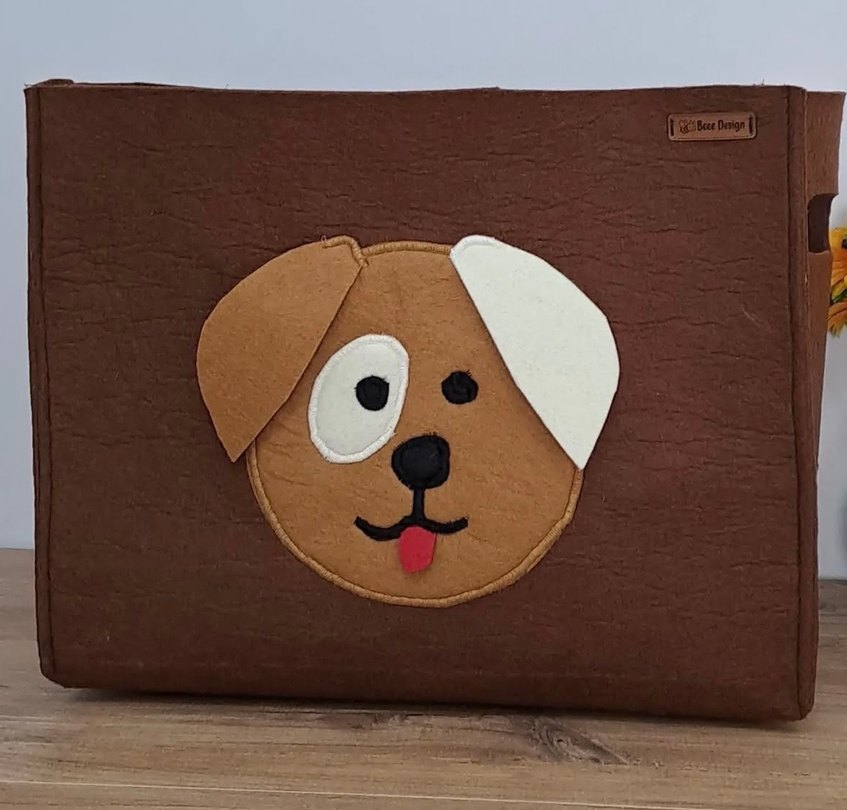 Köpek Desenli Kahverengi Keçe Oyuncak Kutusu