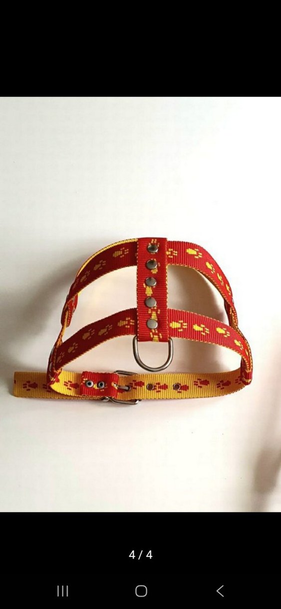 Pati desenli, ayarlanabilir kayışlı ve sağlam metal halkalı renkli kırmızı köpek göğüs tasması.