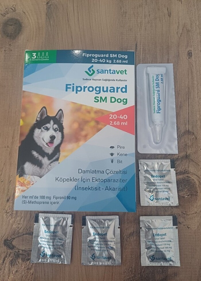 20-40 kg köpekler için dış parazit 1 adet damla + 4 adet iç parazit hapı