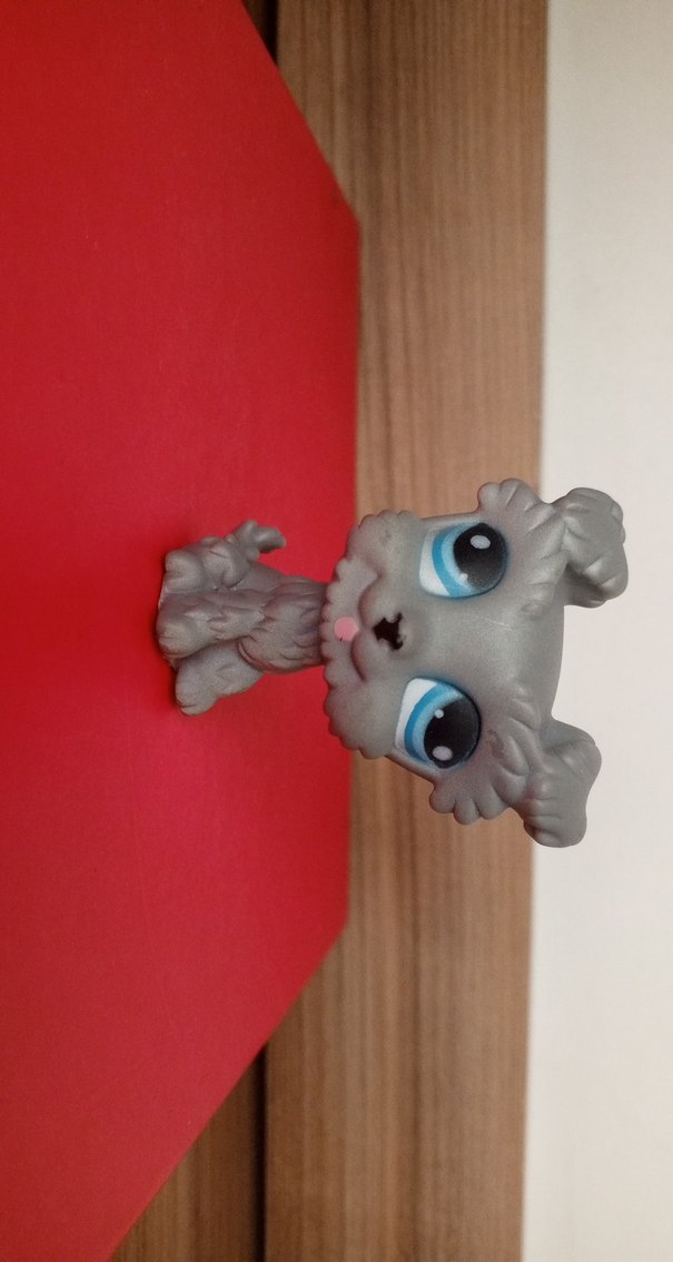 Büyük mavi gözlü ve ayrıntılı tüy dokusuna sahip küçük gri oyuncak figür.