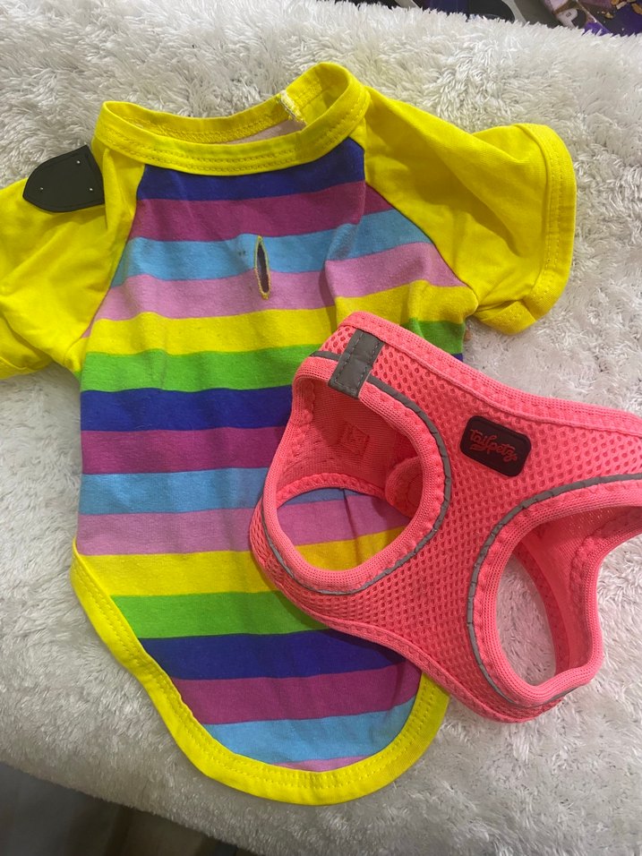 Tişört S , göğüs tasması xs beden İkiside kullanılmış ürünlerdir fiyatı makul yazdım
