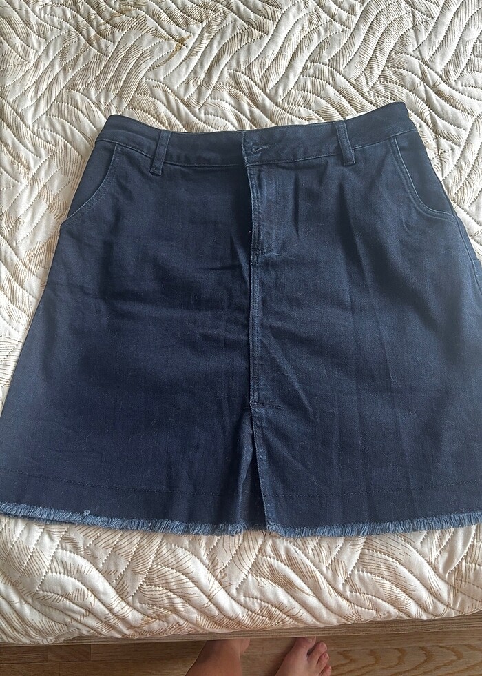 Yargıcı marka az giyilmiş önden yırtmaçlı kot etek