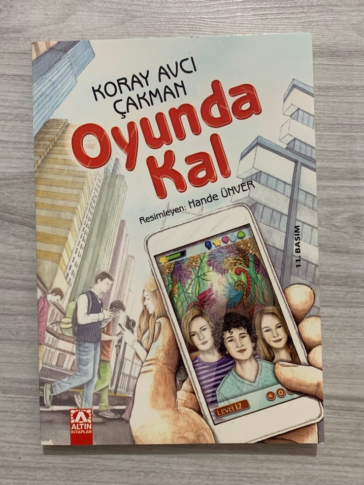 Koray Avcı Çakman'ın "Oyunda Kal" adlı çizgi romanı, Hande Ünver'in çizimleriyle. Kapakta telefon ekranında karakterler yer alıyor.