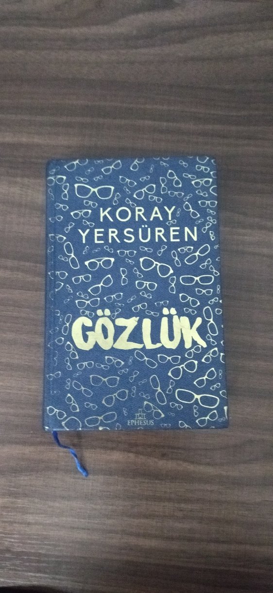 Koray Yersüren'in "Gözlük" romanı, mavi zemin üzerinde çeşitli gözlük çizimleriyle kaplanmış bir kapağa sahiptir. kitap 544 sayfadır