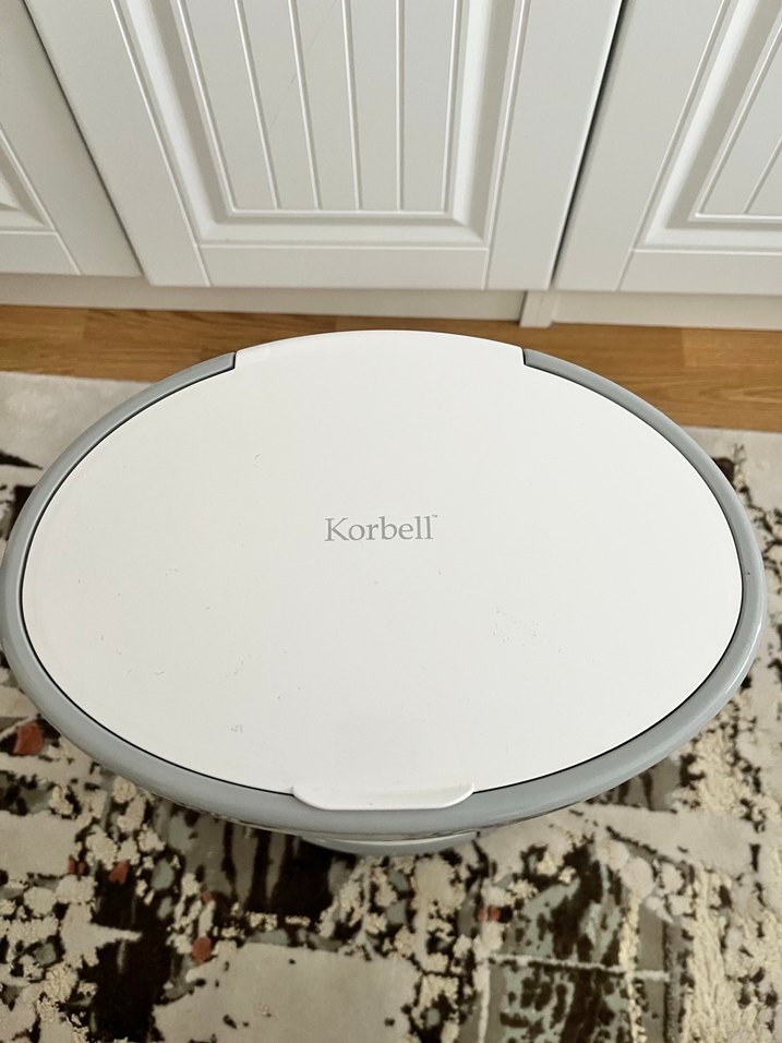 Korbell bebek bezi atık kutusu, hijyenik kullanım için beyaz kapaklıdır.
