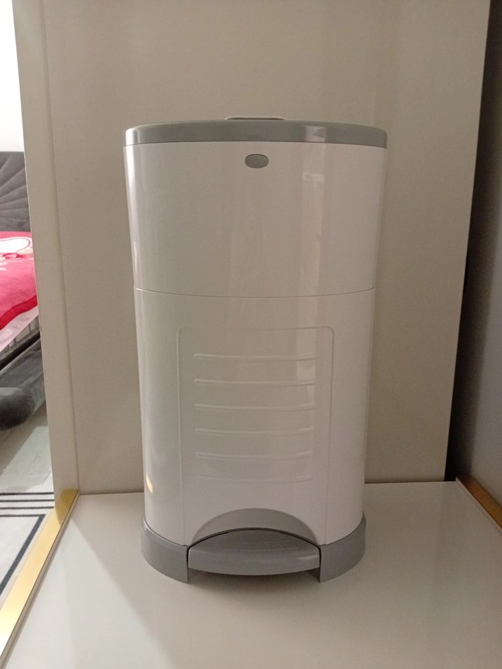 Korbell marka gri renkli bebek hijyen kutusu, pedallı kapanma sistemi ile hijyen sağlar ve kullanım kolaylığı sunar.