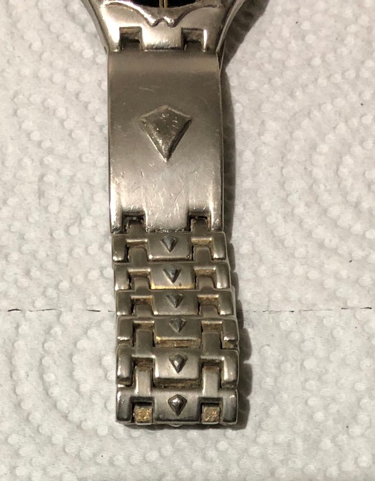 Geometrik desenlere sahip parlak altın erkek saat kayışı, vintage tarzı ve sağlam toka ile öne çıkar. ⌚