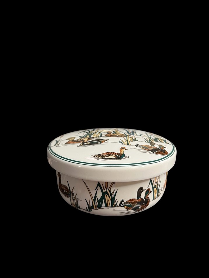 Seramik kutuda, ördek ve saz deseni. dekoratif bir görünüm sunar. İade yoktur