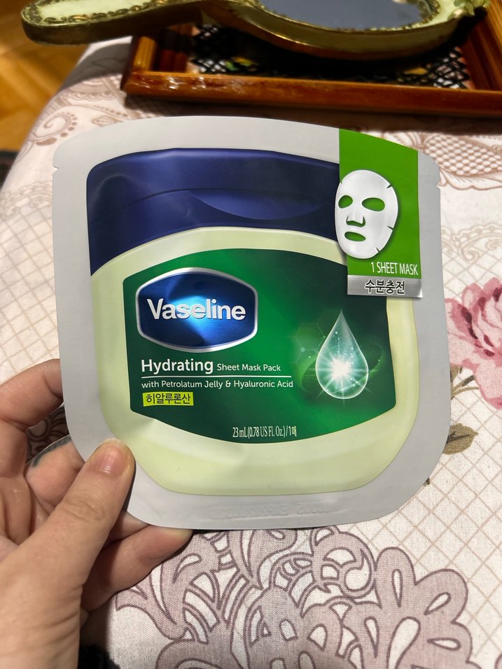 Vaseline nemlendirici tek kullanımlık maske, petrolatum jeli ve hyaluronik asit içerir. Cildi derinlemesine nemlendirir ve tazeler. Kore’den aldım