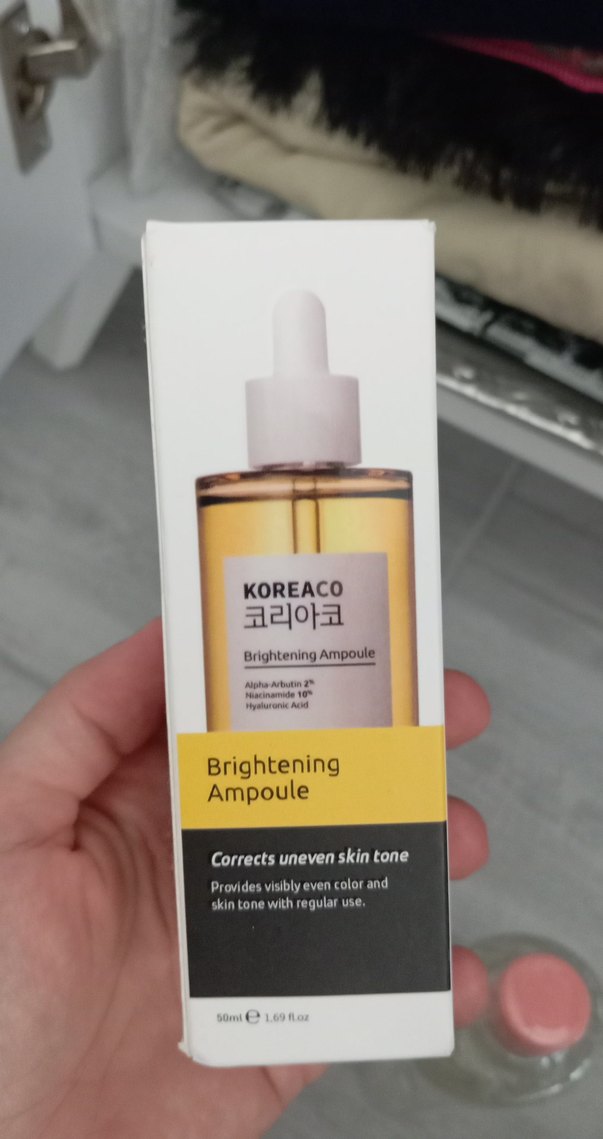 KOREACO Aydınlatıcı Ampul, düzensiz cilt tonunu düzeltir ve düzenli kullanımda cilt rengini eşitler. Alpha Arbutin, Niacinamide ve Hyaluronik Asit içerir. ✨