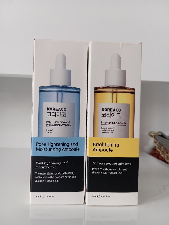 Koreaco markasının gözenek sıkılaştırıcı ve nemlendirici ile aydınlatıcı ve ton eşitleyici özellikli 50 ml ampuller.ne kadar kullandığım belli. toplu fiyat