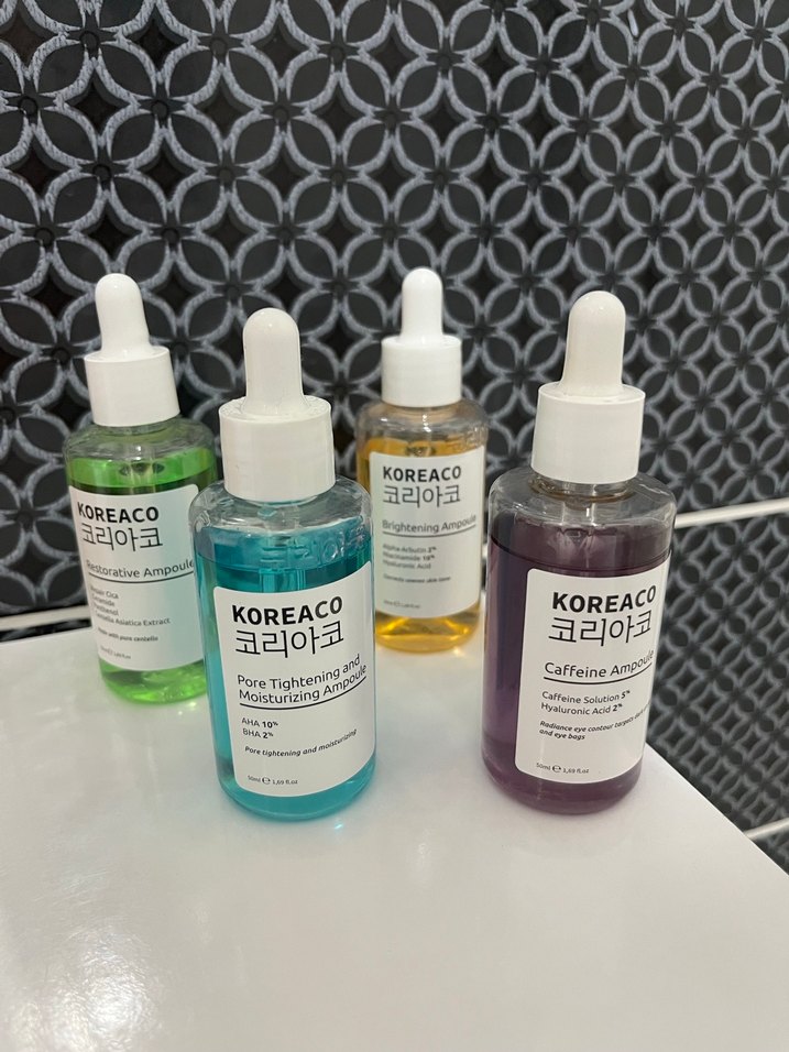 Koreaco anti-aging serumlar; gözenek sıkılaştırıcı, aydınlatıcı, kafeinli ve onarıcı ampullerden oluşur, nemlendirici ve cilt pürüzsüzleştirici etkilidir. Çok az kullanılmıştır