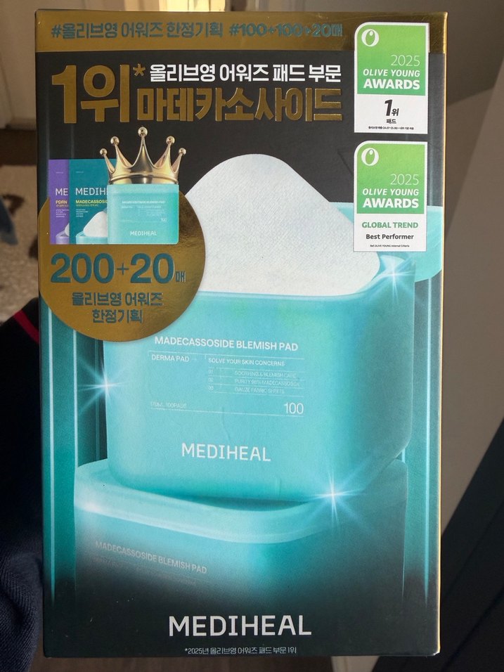 Mediheal Madecassoside Blemish Pad, 120 ped içerir ve cildi yatıştırmaya yardımcı olur. 2025 Olive Young Awards'ta en iyi performans ödüllüdür. Temel faydaları ✅ Cildi yatıştırır ve kırmızılığı azaltır Ürün içeriğindeki Madecassoside ve Centella Asiatica (cica) gibi aktifler, tahriş olmuş veya kızarmış cildi sakinleştirmeye yardımcı olur.  ✅ Nem dengesi sağlar ve cildi güçlendirir Nem bariyerini destekleyerek cildi dış etkenlere karşı daha dirençli hâle getirir ve kuruluğu hafifletir.  ✅ Leke ve iz görünümünü azaltmaya yardımcı olur Sivilce sonrası koyu lekeler ve eşitsiz ton üzerinde zamanla daha dengeli bir görünüm sağlamaya yardımcı olabileceği belirtiliyor.  ✅ Günlük bakım için rahat kullanılır Temizleme sonrası tonik gibi tüm yüze veya lekeli bölgelere nazikçe uygulanabilir; ayrıca kısa bir mini maske gibi de kullanılabilir. ! ürün hiç açılmamıştır ! bakım ürünü olduğu için iade yoktur
