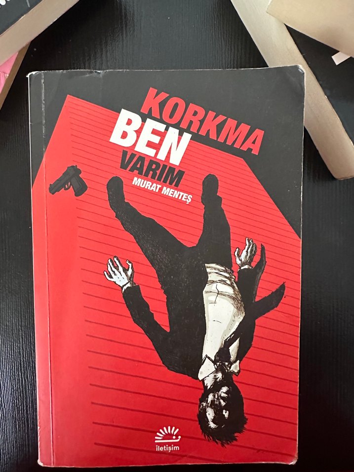 Murat Menteş'in 'Korkma Ben Varım' romanı, kırmızı kapak ve düşen adam silueti ile İletişim tarafından yayımlandı.