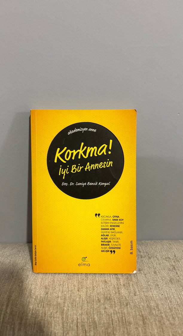 Doç. Dr. Saniye Bencik Kangal'ın yazdığı, annelere yönelik rahatlatıcı ve esprili tavsiyeler içeren 'Korkma! İyi Bir Annesin' kitabı.