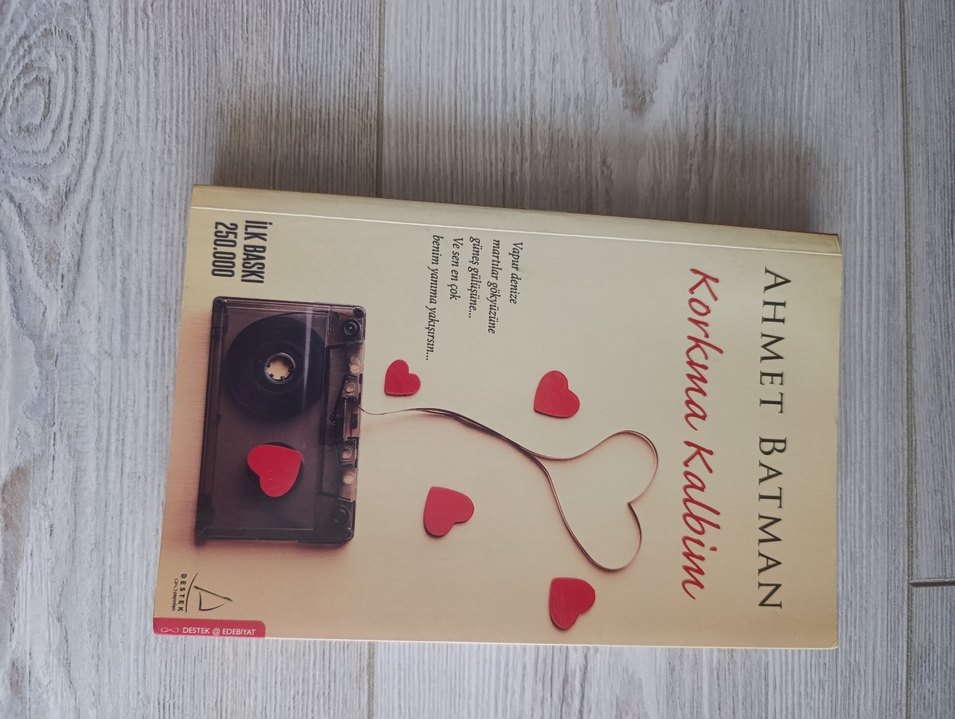 Korkma Kalbim, ilk baskı bir roman olup aşk ve cesaret temalarını işler. Kapakta kalp şekli oluşturan kaset görseli bulunur. ❤️