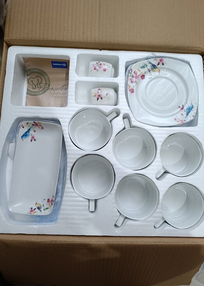 Orjinal korkmaz bonjour collection marka çeyizime almıştım hiç kullanılmadı kolisini resim çekmek için açtım kırık çizik vs yok 6 kişilik bulaşık makinasında yıkamaya uygundur evimde depolama alanım az olduğundan ihtiyaç fazlası set içeriği - 6 parça 23cm servis tabağı 6 parça yumurtalık 6 parça 200cc çay fincanı 6 parça çay fincan tabağı 2 parça kayık tabak 4 parça reçellik 1+1 parça şekerlik ve kapağı 1+1 parça demlik ve kapağı 1+1 parça tuzluk ve biberlik
