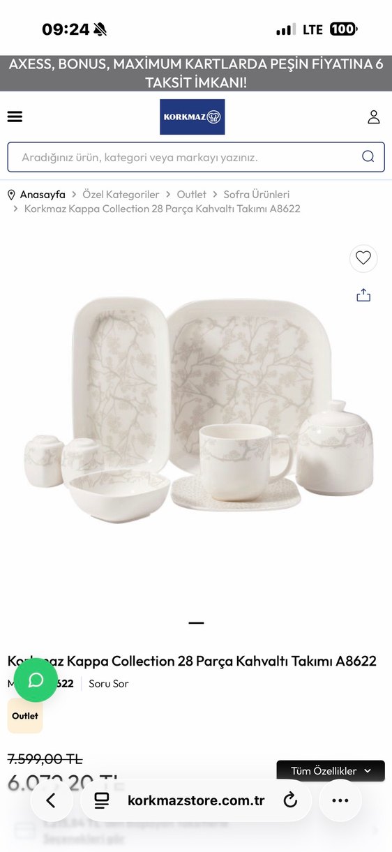 Korkmaz Kappa Collection, beyaz ve gri renklerde 28 parçadan oluşan, zarif çiçek desenli kahvaltı takımıdır. Tabaklar, fincanlar ve kaplardan oluşur. ️ayriyeten çayşım üstüde vardır.