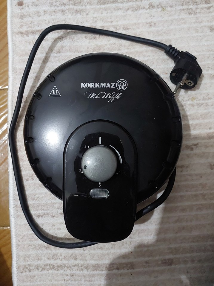 Ayarlanabilir sıcaklık kontrolü ve kompakt tasarıma sahip Korkmaz siyah mini waffle makinesi. tertemiz yeni gibi 2 defa kullanıldi
