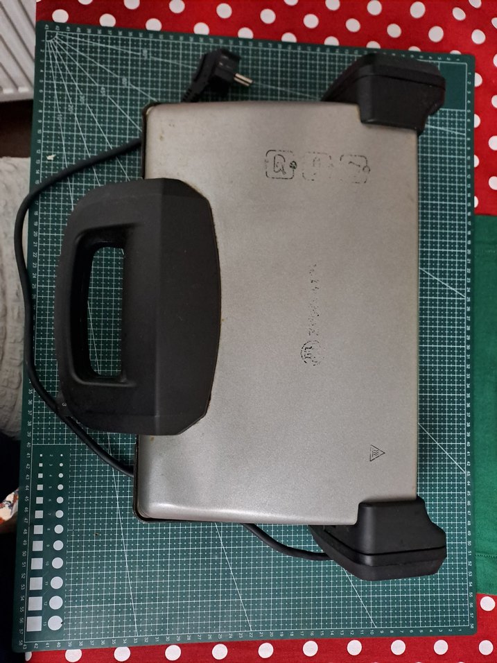Gri renkte, sağlam saplı ve kompakt tasarımlı tost makinesi ve sandviç yapıcıdır. Metal dış yüzeyi ve kaymaz ayakları bulunur.