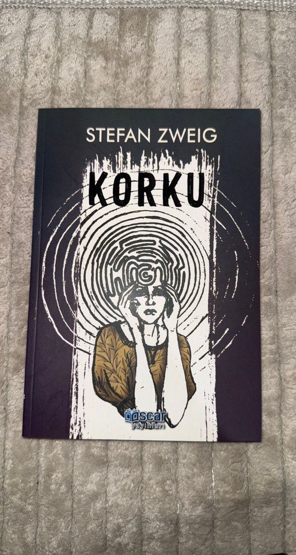 Stefan Zweig'in 'Korku' adlı romanı, içsel korku ve gerilimi yansıtan dikkat çekici kapağa sahip.