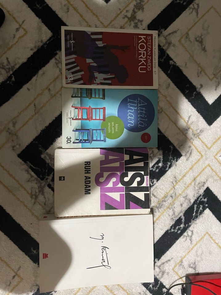 Korku ve Ruhadam romanlarının bulunduğu, farklı kapaklara sahip edebi kitap seti.