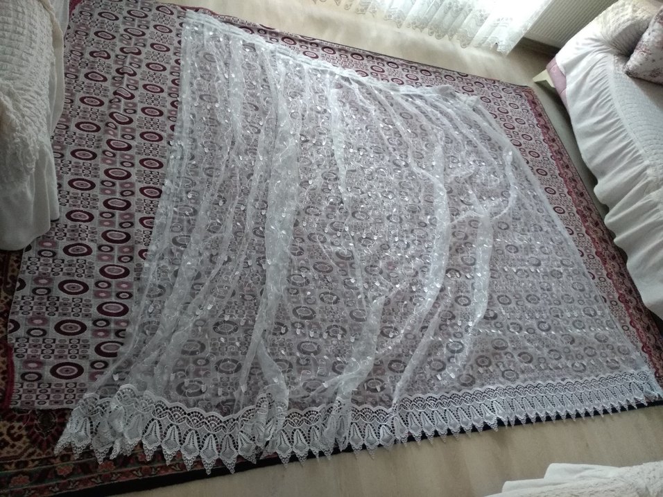 kornisli sorunsuz perde ölçü verildi en 150 boy 180 cmdir yikanmisti kullanilmadi . leke kır yirtik yok. sarı falan değil beyaz renk az bi donem kullanildi temiz