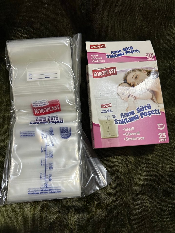 Koroplast anne sütü saklama poşetleri steril, güvenli ve sızdırmaz özellikte. 25 adet pastel beyaz poşet ölçü işaretli ve BPA içermez.