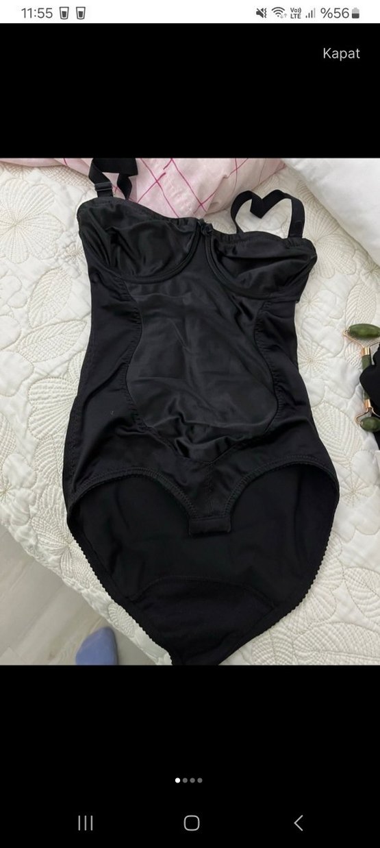 siyah gotik tarzda balenli guzel bir korse bedeni olmadigi için tatisda