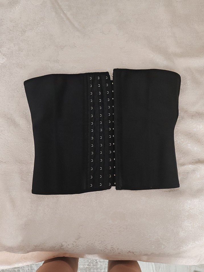 Dikişsiz, kancalı kapamalı siyah göğüs korsesi, midi boy destek sağlar ve düzgün bir görünüm sunar. Marka temsili xs beden içindir kalıbı dardır