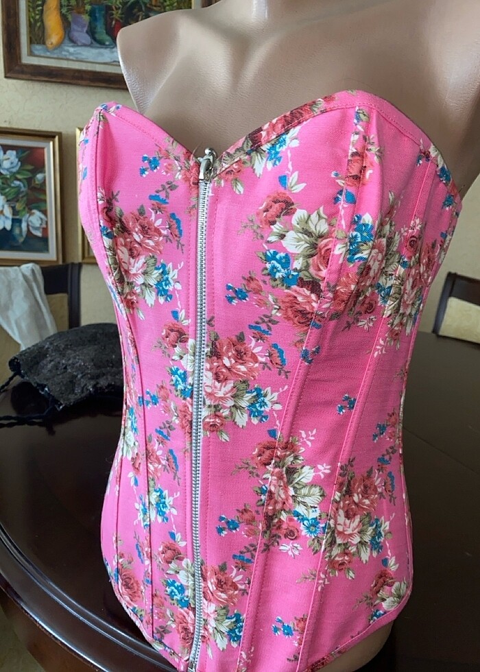 Korse büstiyer pembe çiçek detaylı önden fermuar