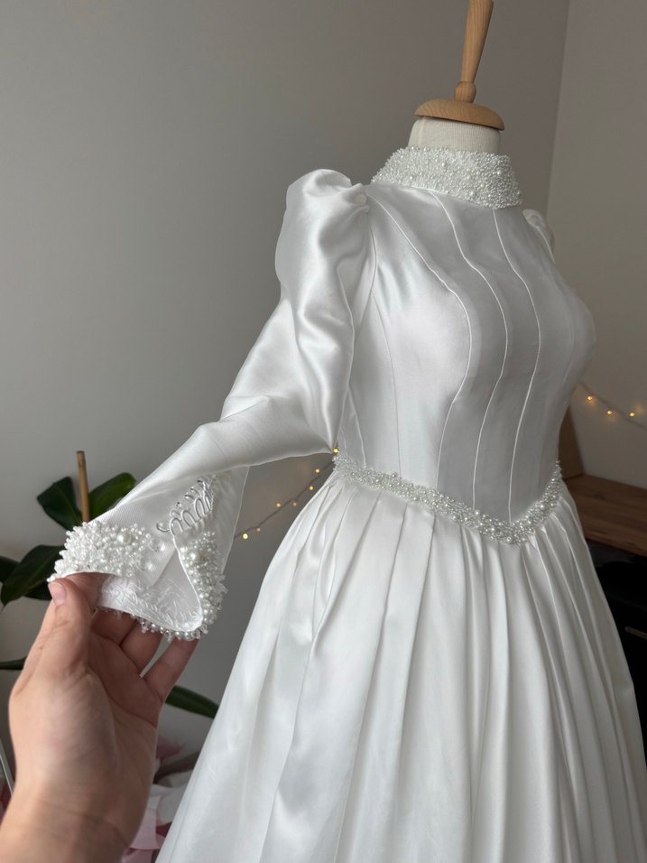Özel dikim dikildi ve ilk sahibi benim. ✅1 defa kullanıldı:) ✅Kuru temizlemesi yapıldı ✅ yeni gibi deforme olmamıştır. ✅duvak ve tarlatan dahil ✅38-40 beden uyumludur. Arkası ipli olduğu için rahatlıkla alabilirsiniz Ben sade tercih ettim ama naçizane fikir verecek olursam İsteğe bağlı üst bedene inci taş işleme yaptırabilirinsiniz. Severek giydim ve çevremde zarifliğini ve modelini çok beğendi. Yeni sahibine şimdiden hayırlı olsun. ✨ Kenarda duracağına ihtiyaç karşılasın diye Fiyatının çok altında satıyorum. Şimdiden alıcısına hayırlı olsun