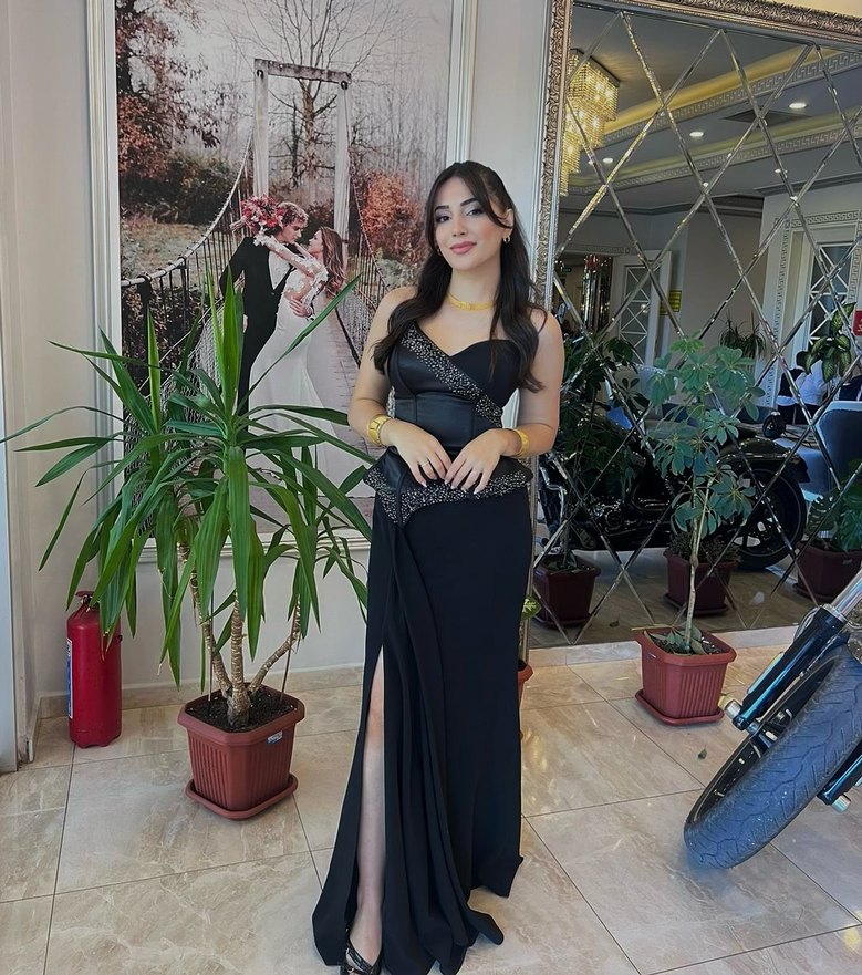 Siyah üstü korseli hafif diz üstü yırtmaçı olan arkası ipli elbise