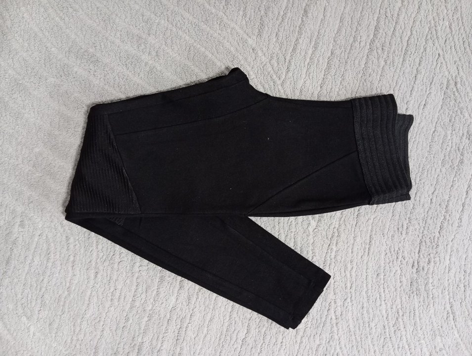 Siyah, yüksek bel korseli esnek sentetik kumaştan yapılmış, normal boyda, spor ve sokak stiline uygun kadın taytı.