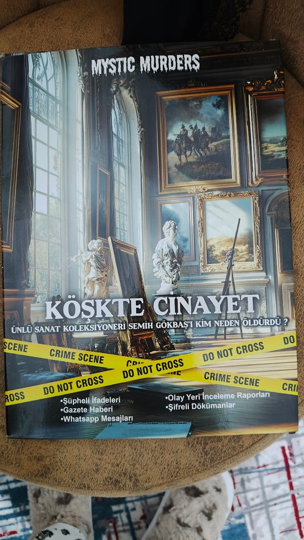 Mystic Murders'un 'Köşkte Cinayet' kitabı; olay yeri inceleme raporları, şüpheli ifadeler, şifreli dokümanlar, gazete haberleri ve Whatsapp mesajları içerir. ️ Ailece veya Arkadaşlarla Oynanacak Harika Dedektif Oyunu