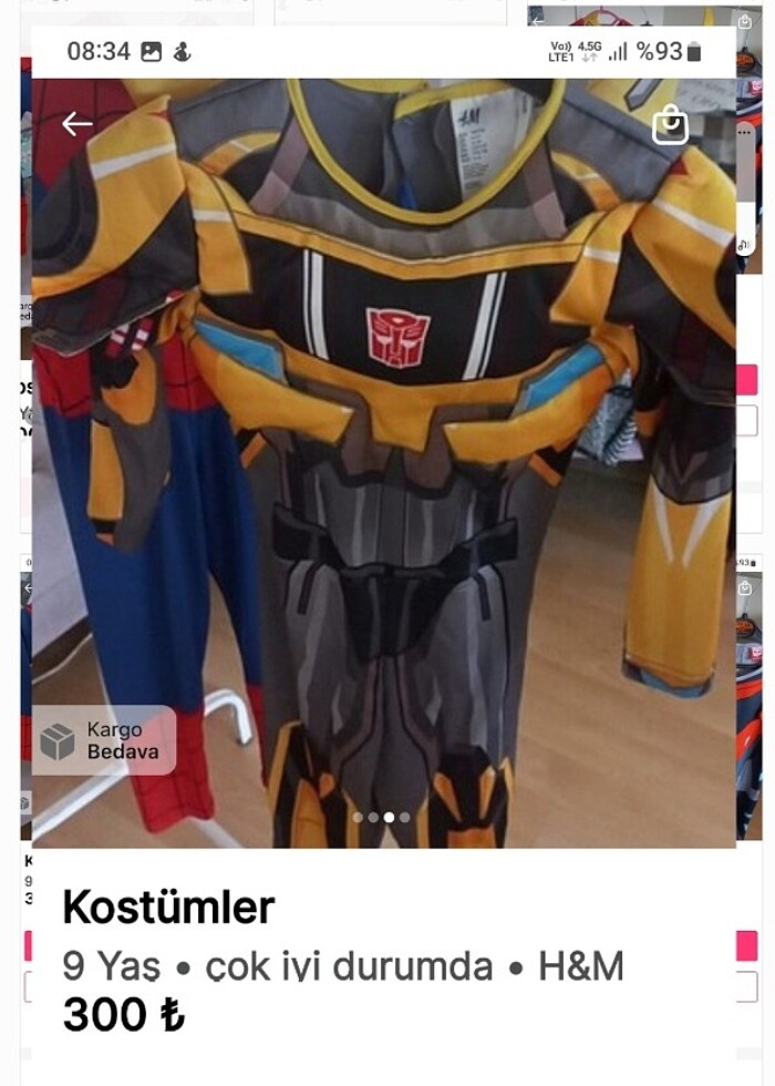 Kostüm bumblebee ve spiderman
