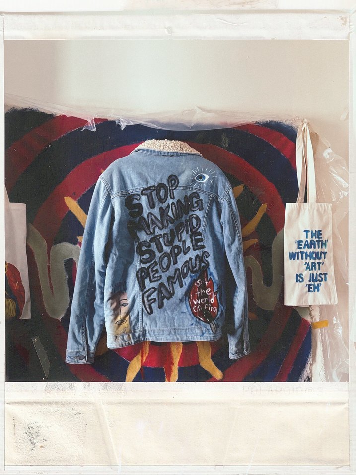 Large beden kot ceket üstüne akrilik çalışma
