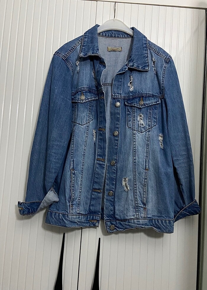 Taşlanmış yırtık oversize kot ceket.