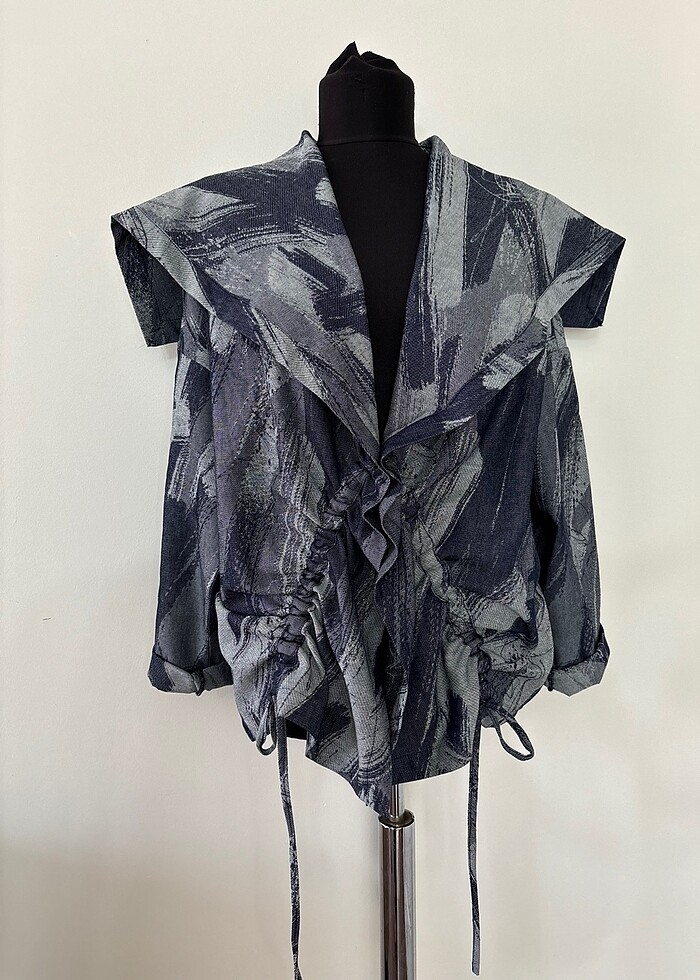 Desenli Bahriye yaka kot ceket size özel ölçülerle hazırlanır